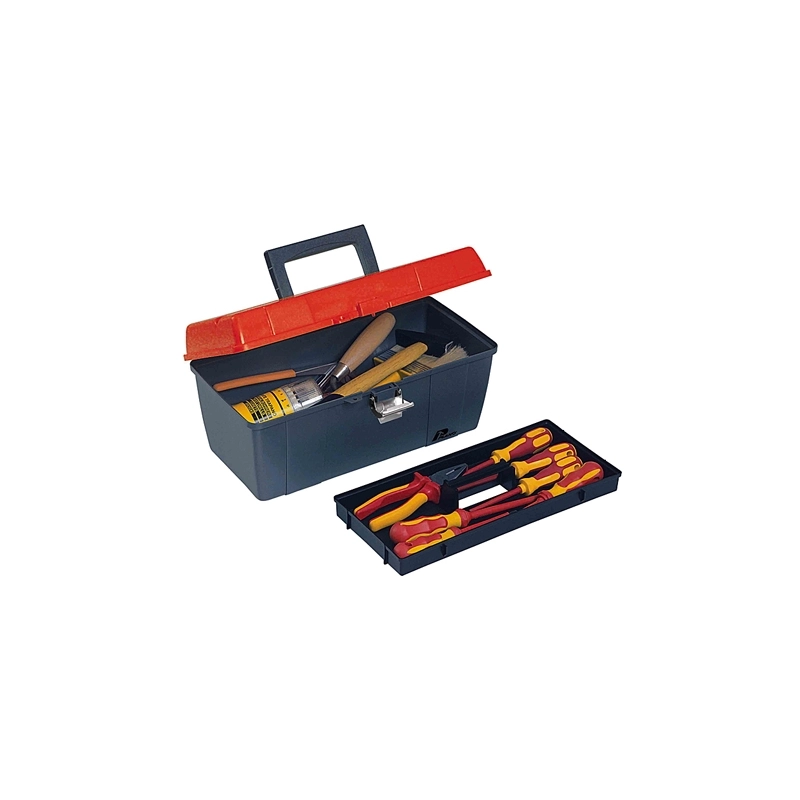 In polipropilene, con ampio vano inferiore portautensili e vassoio interno. Possibilita' di lucchetto. Modello = articolo/dimensioni cm