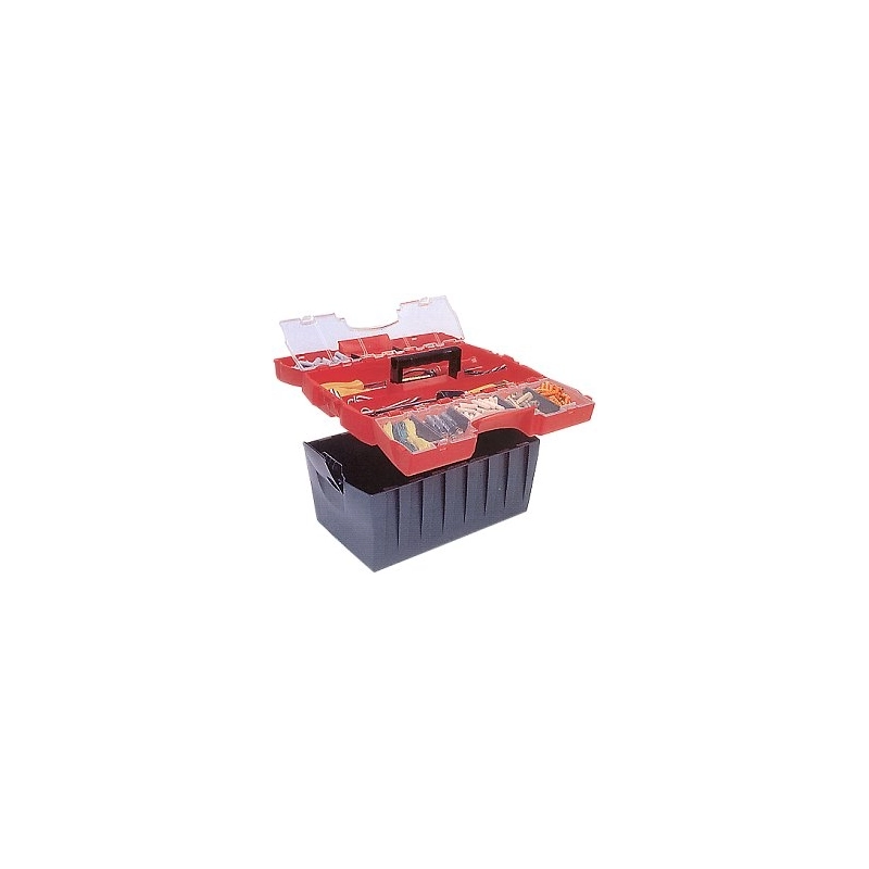 In polipropilene, con ampio vano inferiore portautensili e portaminuteria incorporato con scomparti componibili da 6 a 14. Possibilita' di lucchetto. Dimensioni cm 44x26x26