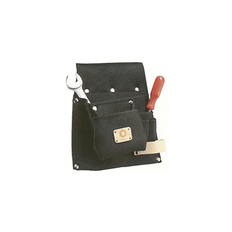 Borsa a 5 tasche realizzata in doppia tela di nylon ad elevata resistenza. Speciale rivettatura nei punti di maggiore sforzo. Portamartello ad anello in cuoio.