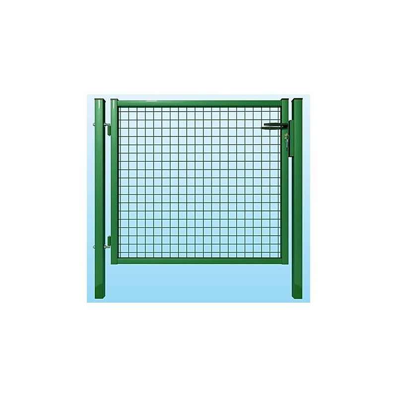Cancello pedonale ad anta singola. Piantane quadre 60 mm e cornici in tuo d'acciaio mm 35-40. Rete interna mm 50x50x4. Cerniere regolabili, completi di maniglia e serratura reversibile. Imballo con predisposizione per la posa. Made in Italy. Colore verde. Modello = altezza in cm