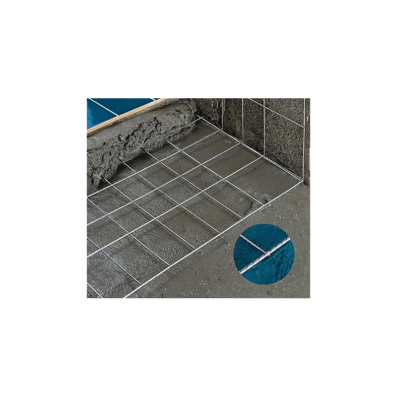 Rete elettrosaldata in fogli da cm 200x100 per pavimenti e facciate con funzione antifessurativa e antiritiro. Realizzata in filo nervato che garantisce un incremento di aderenza con il cemento. Zincatura a caldo. Modello = articolo/dimensione maglia mm/spessore filo mm
