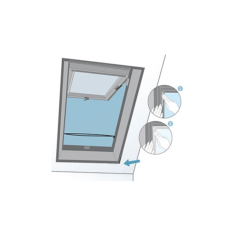 Zanzariera per finestre mansarda di facile applicazione tramite nastro velcro-adesivo. Prevede una zip che rende possibile l'apertura di finestre a tetto con zanzariera montata. Dimensioni 1,5x1,3 mt. Colore nero.