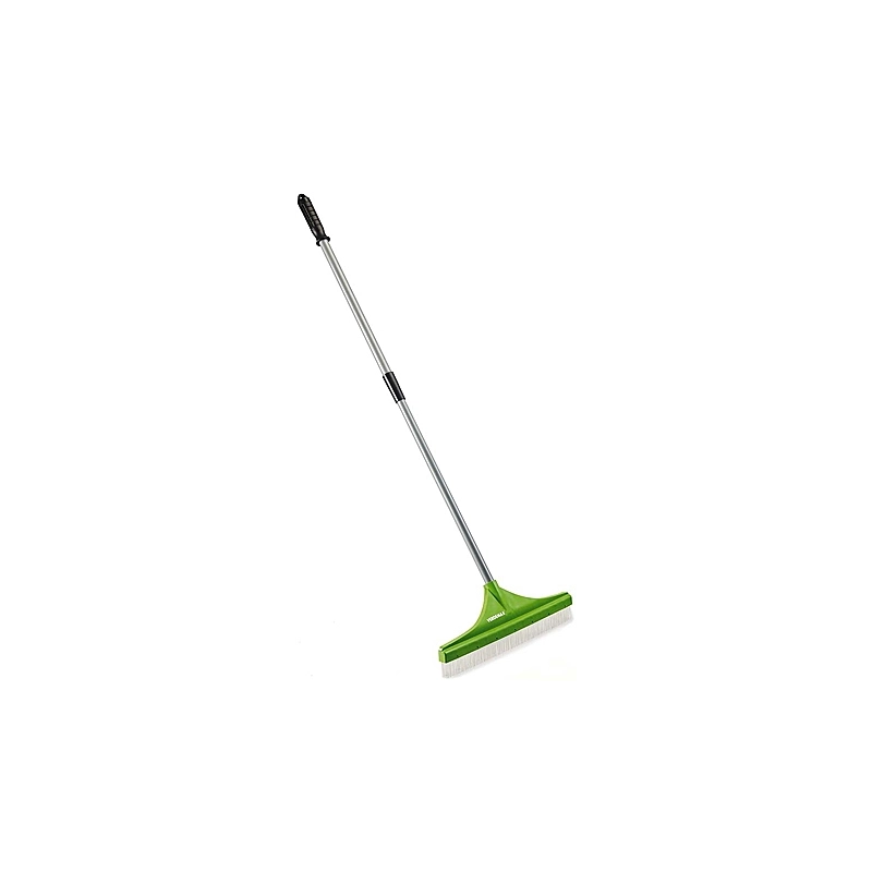 Spazzola manuale specifica per la pulizia dei prati sintetici. Larghezza 45 cm. Manico allungabile, lunghezza 132 cm.