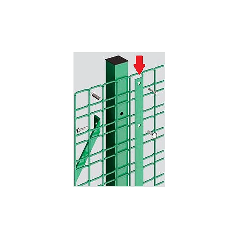 Lame per il montaggio di recinzioni in rotolo sui pali quadri. Da fissare con il kit viti canocchiale (da acquistare a parte). Modello = colore/per palo altezza cm
