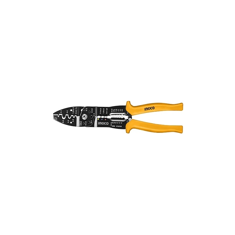 Pinza brunita in acciaio, manici rivestiti in resina. Per tagliare cavi, spelare fili e serrare capicorda non isolati. Lunghezza 250 mm.