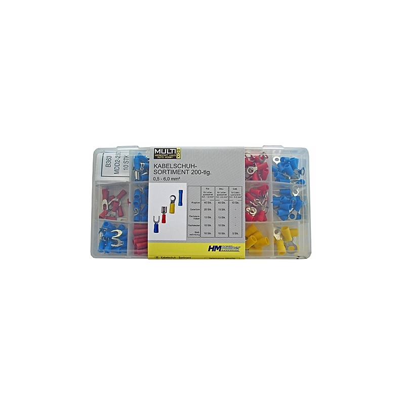 Scatola assortimento capicorda 200 pz con 18 tipologie.