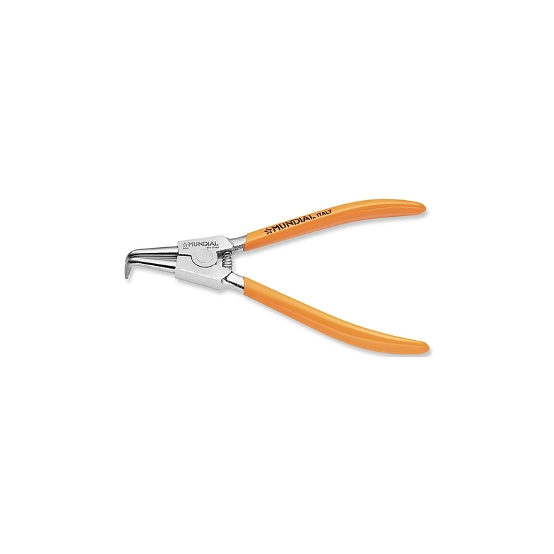 Pinza per anelli elastici esterni con becchi piegati. In acciaio al cromo vanadio. Impugnatura plasticata. Modello = lunghezza mm