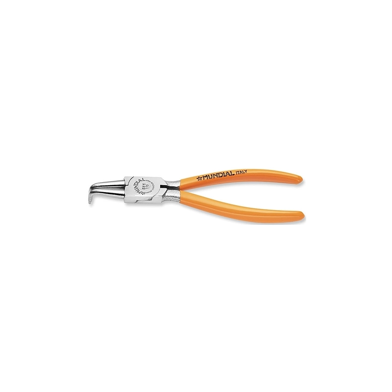Pinza per anelli elastici interni con becchi piegati. In acciaio al cromo vanadio. Impugnatura plasticata. Modello = lunghezza mm