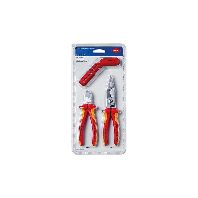Set contenente 1 pinza 6 in 1 manici isolati da 200 mm, 1 tronchese 160 mm con manici isolati e uno spelafili ergo.