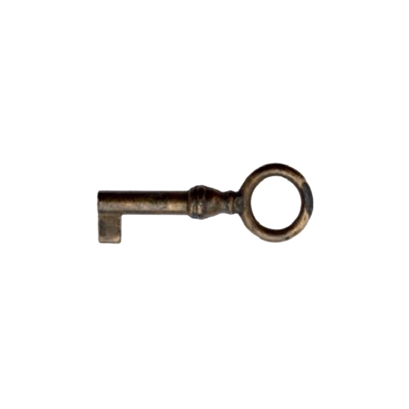 Chiave in ottone. Finitura ottone antico. Dimensioni 20x75 mm.