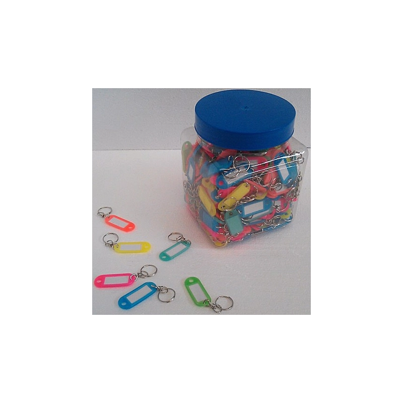 Targhette fluorescenti segnanome a finestra con givolare e anello dimensioni mm 52x22. Barattolo da pz 300. Colori assortiti