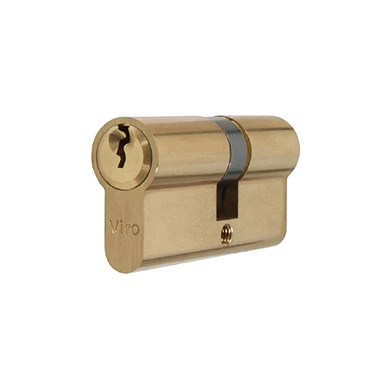 Cilindri in ottone a profilo europeo con chiave a profilo universale. Nottolino universale tondo, pistoncini in ottone, molle in acciaio inox. Modello = lunghezza mm/posizione centro nottolino mm
