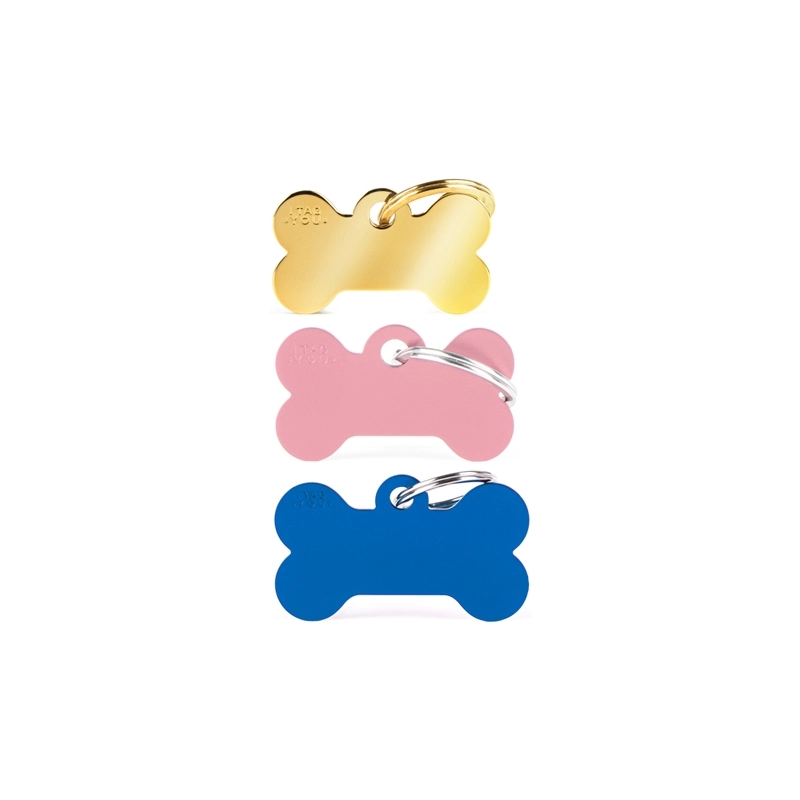 Medaglietta in alluminio a forma di osso. Modello = dimensione/colore