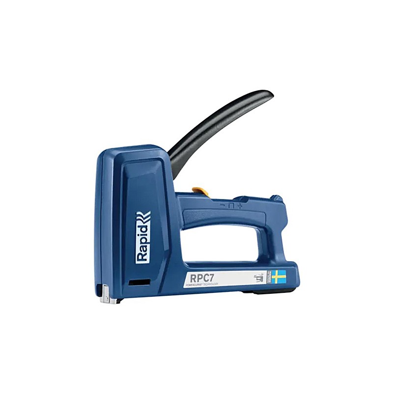 Fissatrice in ABS per graffe a filo sottile o piatto da 6-14 mm, graffe per cavi da 12-14 mm e chiodini no.8 da 15 mm. Parti interne in acciaio. Regolatore di forza a 2 posizioni che consente di ottimizzare la potenza di sparo in base alla lunghezza del punto metallico e al materiale. Fino al 50% di sforzo in meno con il brevetto Powercurve.