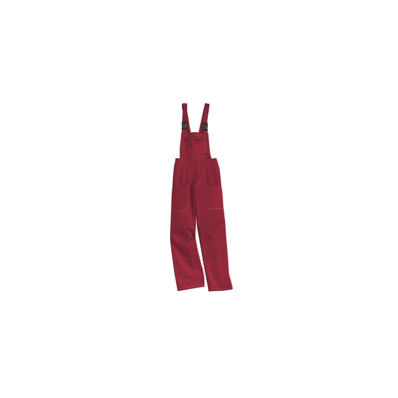 Salopette in cotone 100% sanforizzato da gr.260/m2. Elastico in vita e bretelle regolabili. Cuciture in contrasto. EN 340. Modello = colore/taglia