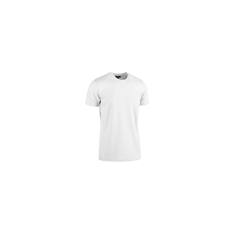T-shirt in 100% cotone jersey. 145/150 gr/m2. Girocollo sottile in rib singolo. Parasudore nel collo. Etichetta staccabile. Colore bianco. Modello = taglia