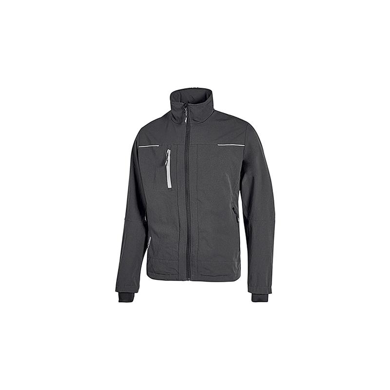 Giacca in 90% Nylon e 10% Spandex. 260 gr/m2. Morbida sulla pelle, idrorepellente, traspirante e asciuga rapidamente. Dotata di due tasche frontali e una tasca porta cellulare sul petto chiuse con zip. Due ampie tasche interne. Cappuccio a scomparsa regolabile. Polsino antivento elasticizzato. Inserti in reflex per garantire la massima visibilita'. Colore grigio. Modello = taglia