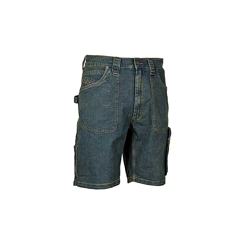 Pantalone corto in jeans, 2 tasche sul davanti - 2 ampie tasche sul retro - 1 tascone porta attrezzi su gamba sx - tasca porta metro - anello porta martello - zip YKK. Modello = taglia