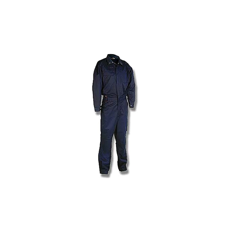 Tuta intera in poliestere e cotone. 65% poliestere 35% cotone da 245 g/m2. Polsino regolabile. Elastico in vita. Dotata di tasca porta metro, passante per martello e tasche per ginocchiere con posizione regolabile. Colore Navy. Modello = taglia