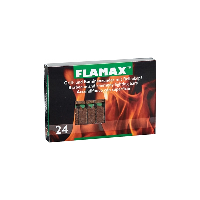 Accendifuoco a base di legno impregnato a cere con testa a fiammifero. Inodore, non tossico, ideale per caminetti e barbecue. Conf. da 24 pezzi.