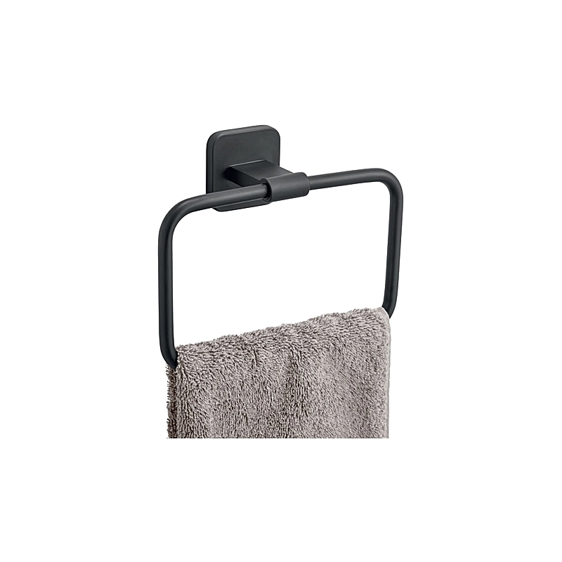 Porta asciugamani in acciaio inox verniciato. Tenuta sicura grazie alla tecnica di fissaggio Turbo-Loc. Adatto a tutte le superfici lisce, ad eccezione di quelle in plastica. Montaggio semplice senza attrezzi e senza forare. Rimovibile senza lasciare tracce. Fissaggio alternativo con viti e tasselli inclusi. Colore nero. Dimensioni 19x6,5x14,5 cm.
