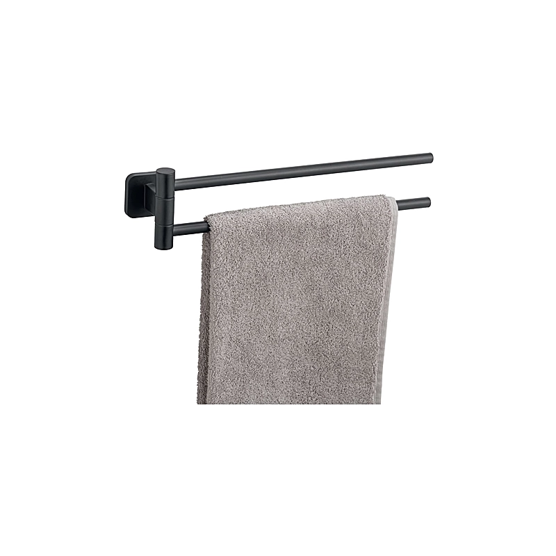 Porta asciugamani doppio in acciaio inox verniciato. Tenuta sicura grazie alla tecnica di fissaggio Turbo-Loc. Adatto a tutte le superfici lisce, ad eccezione di quelle in plastica. Montaggio semplice senza attrezzi e senza forare. Rimovibile senza lasciare tracce. Fissaggio alternativo con viti e tasselli inclusi. Colore nero. Dimensioni 5,5x43x9,5 cm.