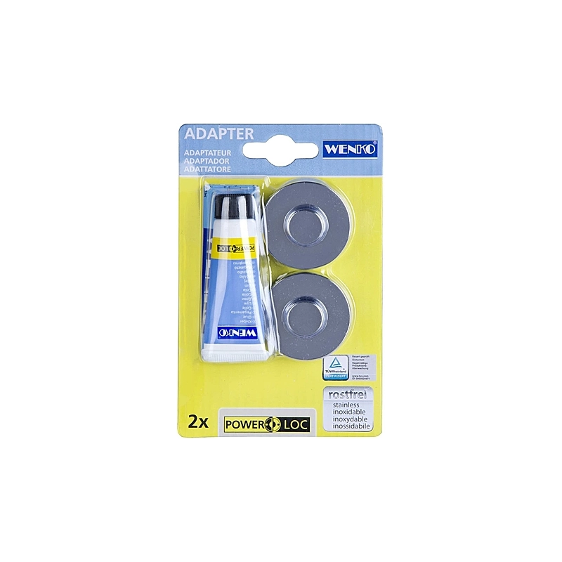 Colla Power Loc con 2 adattatori in acciaio inox. Indispensabili per il fissaggio con colla di alcune linee di accessori bagno. Idonee per mensole linea "PREMIUM"