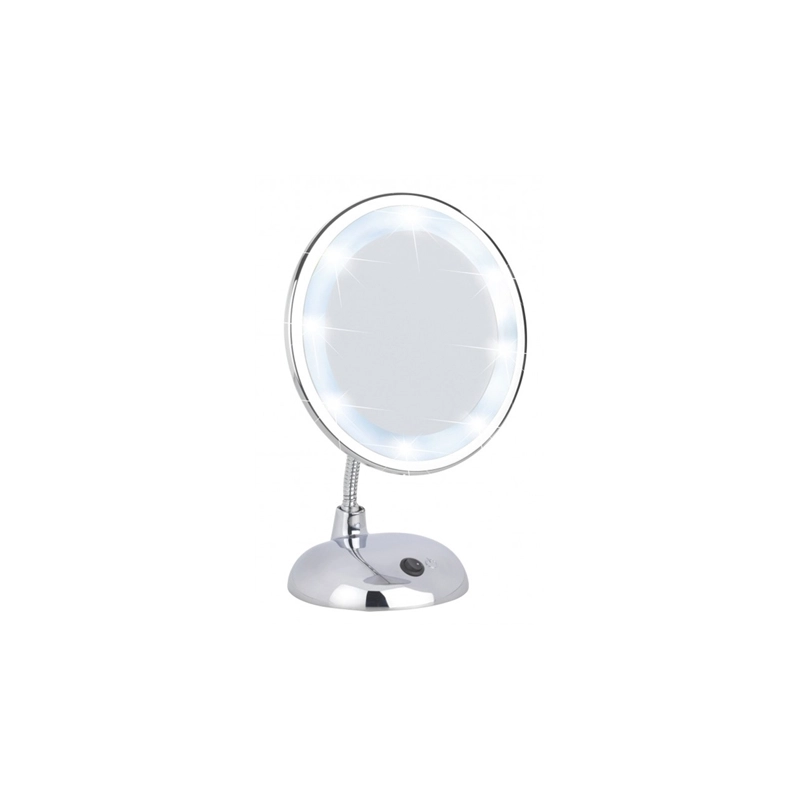 Illuminazione a 8 led di potenza estremamente elevata. Ingrandimento 3X per scopi cosmetici. Funzionamento a batteria. Dim. diametro 17 cm. Peso gr. 800