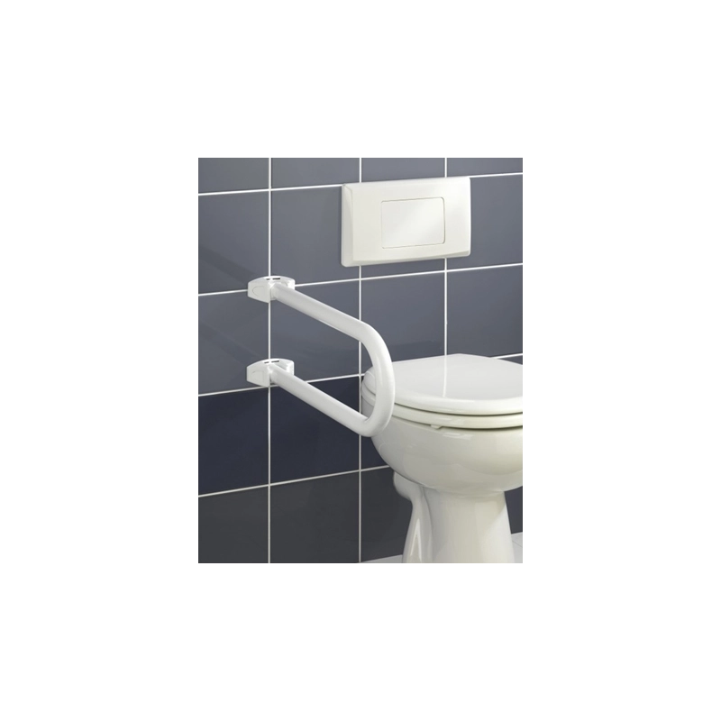 Fornisce supporto ed equilibrio nella zona lavabo e servizi igienici. Pieghevole, poco ingombrante. Realizzato in alluminio e zama. Viti e tasselli inclusi. Colore bianco. Dim. 53x10x21 cm. Peso Kg. 1,40.