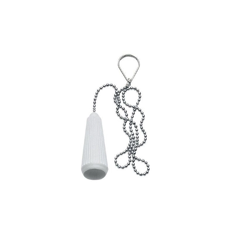 Finitura cromata, campana in plastica di colore bianco.