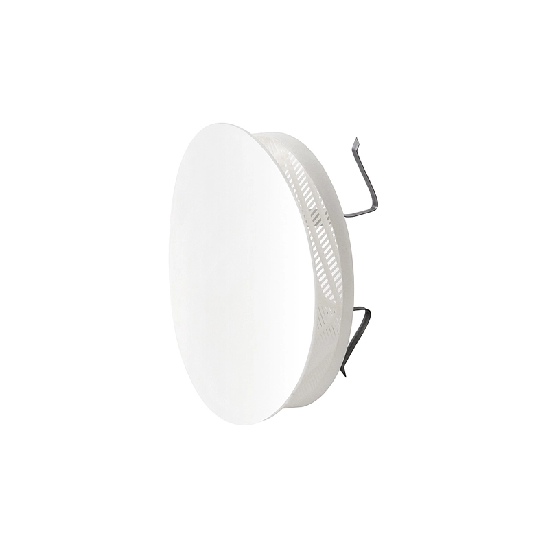 Griglia d'aerazione in plastica di diametro 170 mm con molle per fori da mm 80-125. Con rete e coperchio estetico. Possibilita' di regolare l'apertura della griglia. Colore bianco.