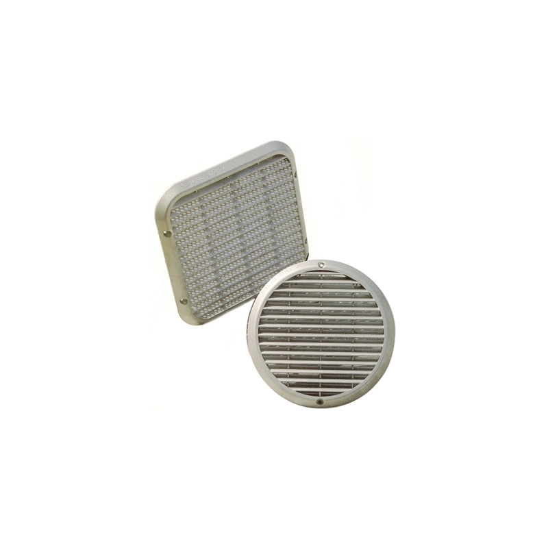 In alluminio pressofuso. Con rete antinsetti. Modello = dimensioni mm./colore