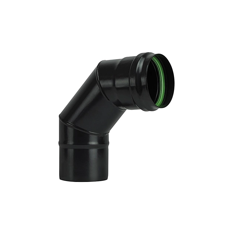 Gomiti in acciaio rivestiti con smalto porcellanato. Spessore mm 1,2. Colore: nero. Le guarnizioni non sono comprese. Angolo curva 90 gradi. Modello = diametro cm