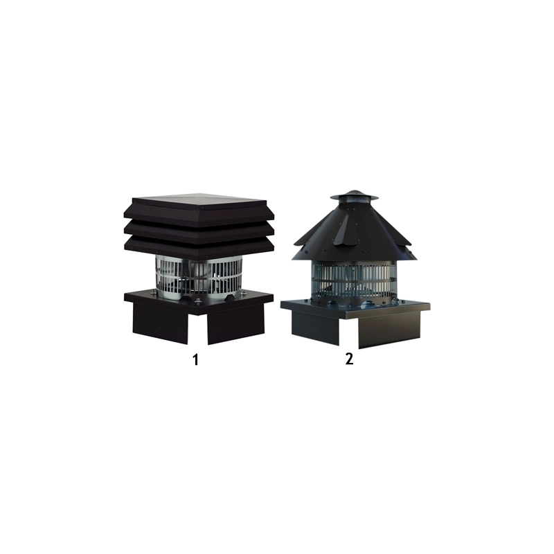 Aspiratore elettrico per camini a base quadra, con flangia regolabile da mm 320x320 a mm 420x420.Struttura in lamiera preverniciata testa di moro. A 4 velocita'. Potenza 0,18 Kw, tensione 230V. Giri 1350/min. IP55. Peso kg 20. Modello= terminale/numero foto