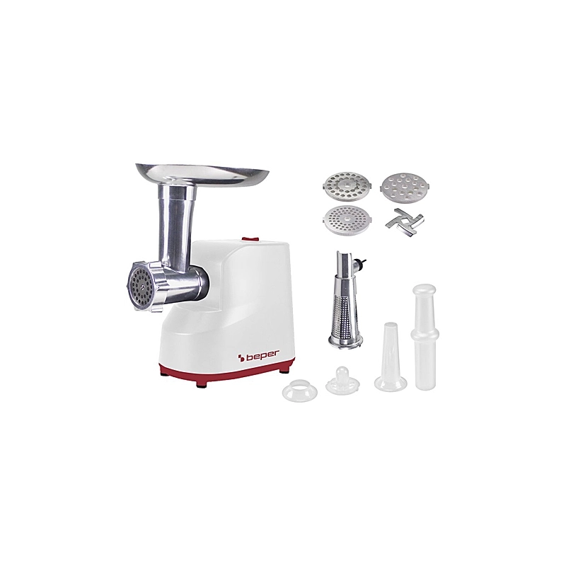 Potenza 1200 Watt. 3 trafile (3, 5, 7 mm) e coltello in acciaio inox. ON/OFF e funzione REVERSE. Ingranaggi in metallo. Completo di accessorio passapomodoro. Dimensioni 24,9x29,1x13,7 cm.