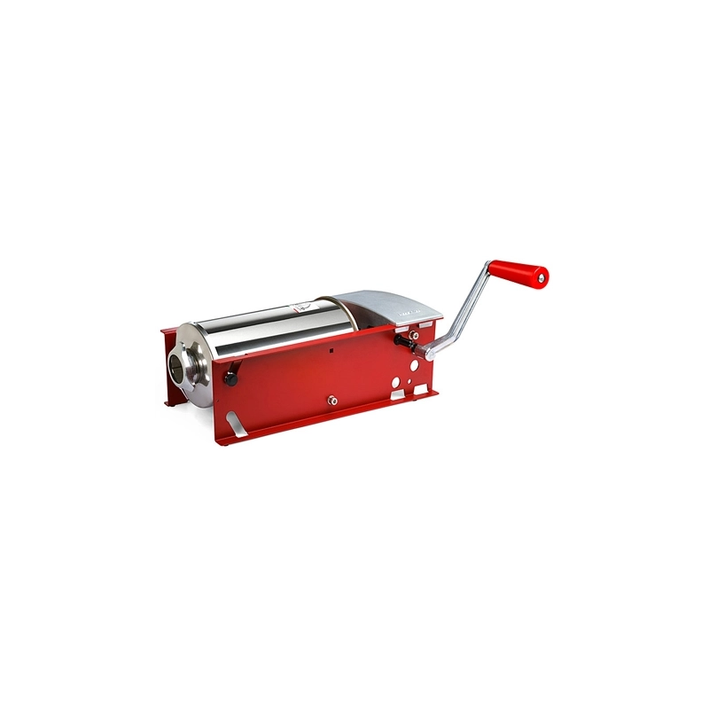 Cilindro in acciaio inox, struttura in acciaio verniciato rosso. Cremagliere sono realizzate in acciaio al carbonio. Ingranaggi metallici antichiusura. Fornite con 4 imbuti. Capacita' l 5. Peso 7 kg.