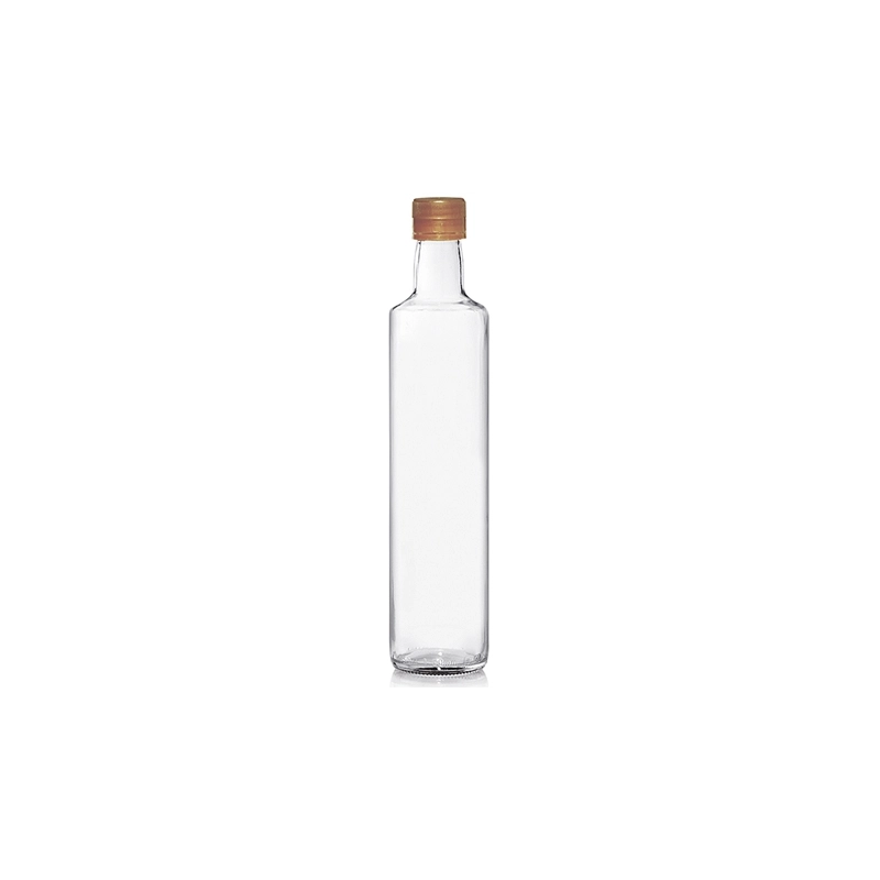 Bottiglia liscia trasparente con tappo. Contenuto 500 ml. Diametro 60 mm, altezza 275 mm.