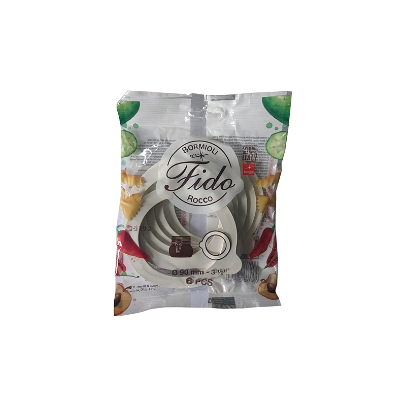 Guarnizioni per vasi Bormioli Fido. Spessore 3 mm. In blister da 6 pz. Modello = diametro mm/per vasi da lt