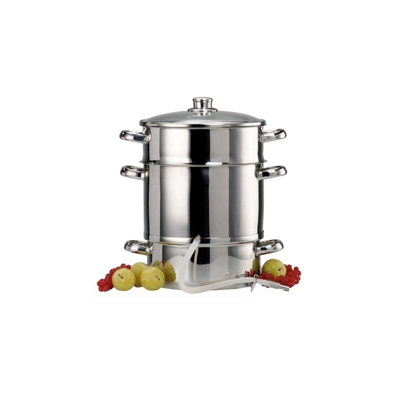 Estrattore per succhi in acciaio inox di spessore 0,6 mm. Base di grosso spessore 3,5 mm, adatto a tutti i tipi di cucina, anche ad induzione. Maniglie in acciaio inox. Fornito con tubo di estrazione. Disponibile anche come ricambio. Modello = capacita' lt