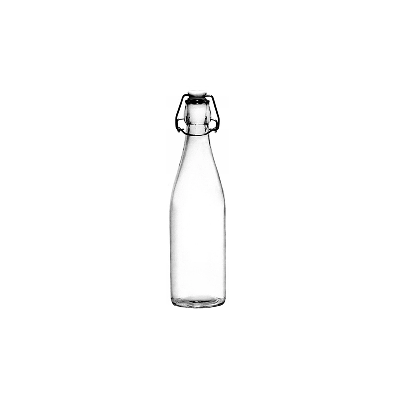 Bottiglia liscia trasparente con tappo ermetico a leva. Modello = diametro x altezza mm/contenuto ml