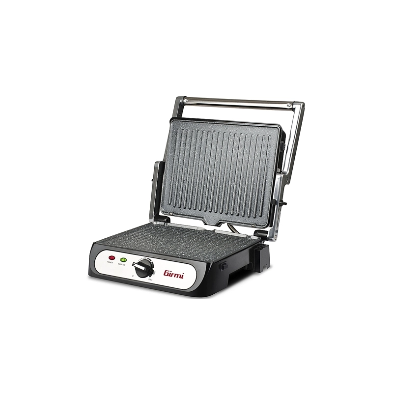 Bistecchiera con corpo in acciaio inox. Potenza 2000 Watt. Piastre antiaderenti rimovibili con rivestimento "Petravera" di dimensioni 29,3x23 cm con possibilita' di apertura a libro a 180 gradi. Ampia maniglia antiscottatura. Regolazione della temperatura. Con cassetto per la raccolta liquidi. Dimensioni 365x140x330 mm.