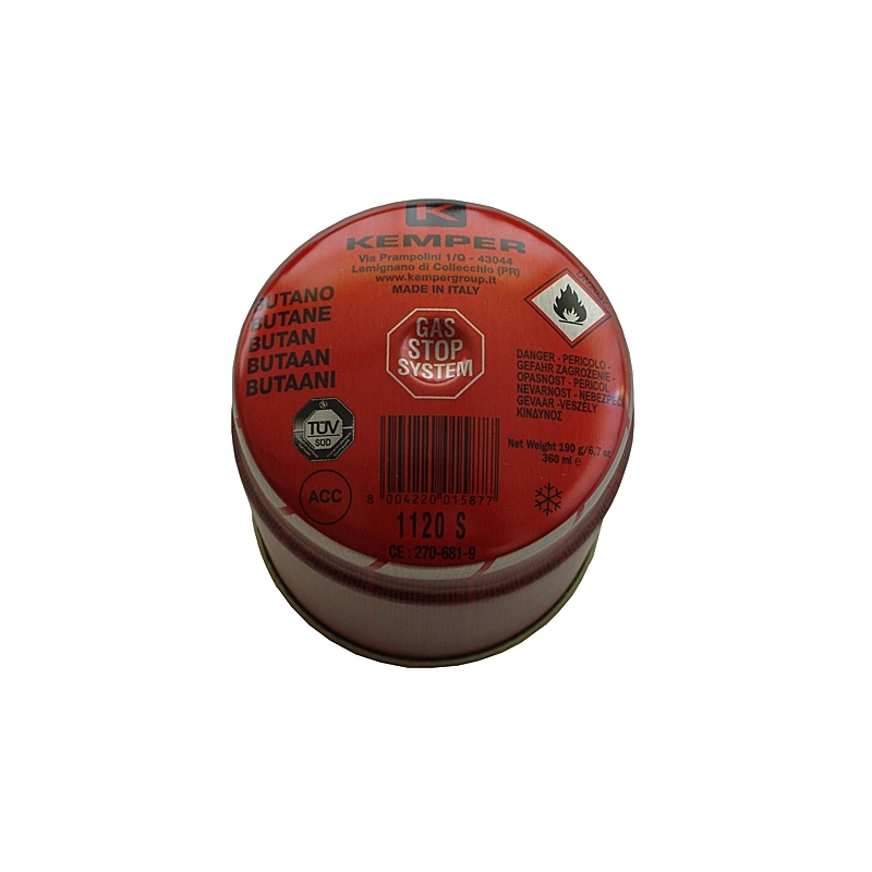 Cartuccia a forare da 190 gr. Con sistema di sicurezza Stop Gas. Indicata per campeggio e saldatori a gas. Collaudata dal TUV in base alla norma EN 417.