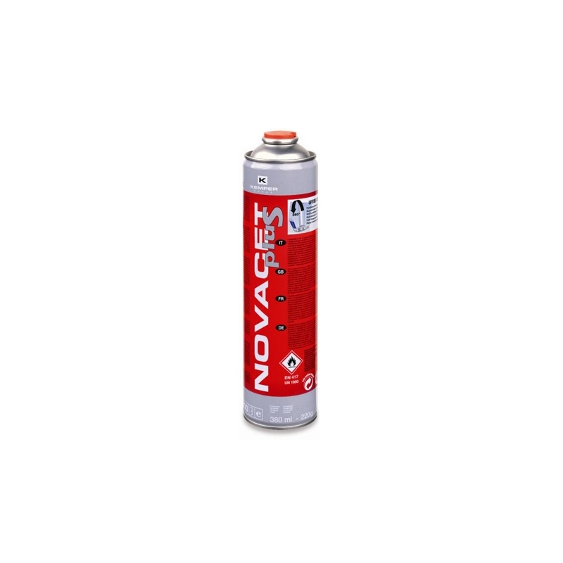 Bombola di Novacet. Con valvola filettata esterna 7/16". Contiene una speciale miscela dalle elevatissime prestazioni. Sistema di anticapovolgimento per evitare uscite di gas e rischio di incendio. Cartuccia da 220 gr.