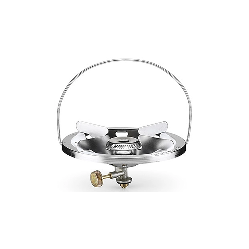 In acciaio cromato con attacco maschio e rubinetto. Per bombole tipo Plein Air e Campingaz.