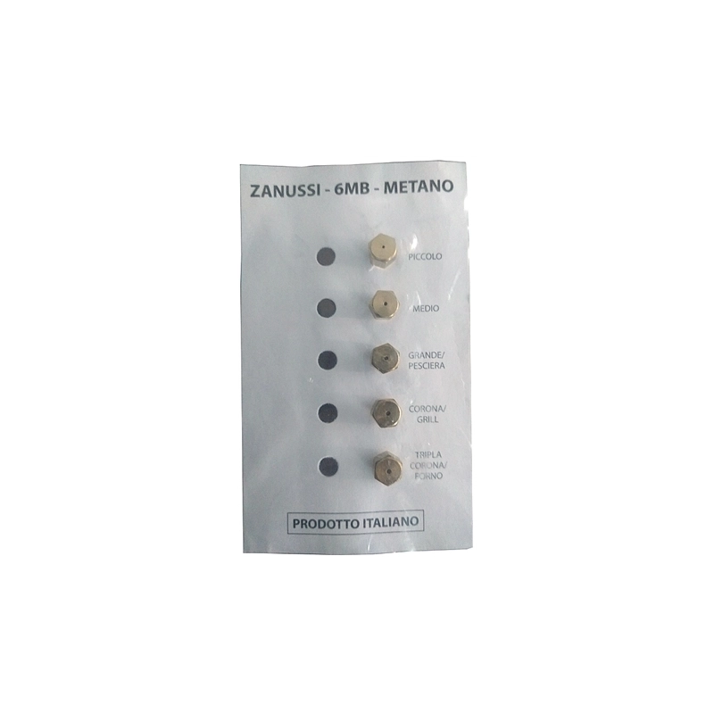 Confezione in blister 5 ugelli per diverse tipologie di fiamma. Modello = tipo gas