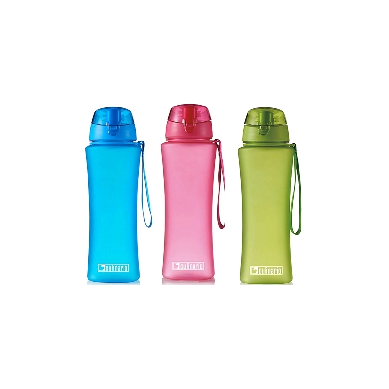 Bottiglia resistente agli urti. Con cinghia. Tappo a scatto, chiusura a vite con guarnizione. Capacita' 0,70 lt. Colori assortiti.
