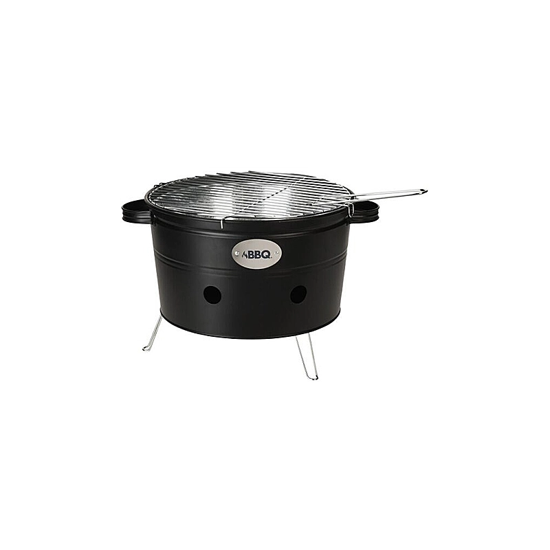 Barbecue tondo diametro cm 34x20h in acciaio verniciato con griglia cromata. Con 2 maniglie. Contenitore interno zincato. Colori assortiti.