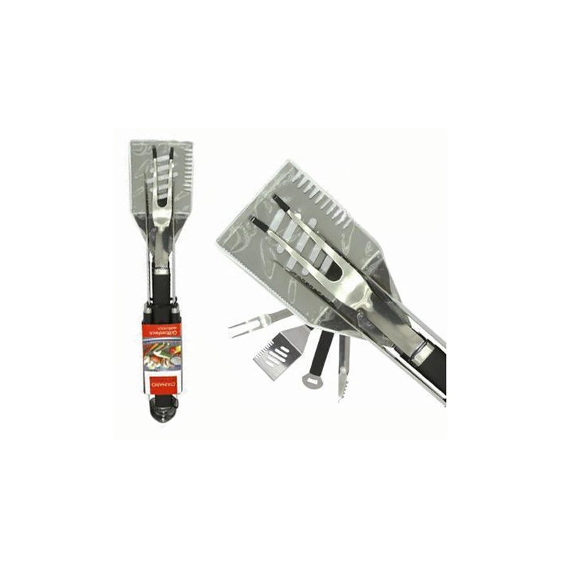 Set per grill, 3 pezzi multiuso composto da paletta, forchetta e pinza. In acciaio, con manico in materiale sintetico