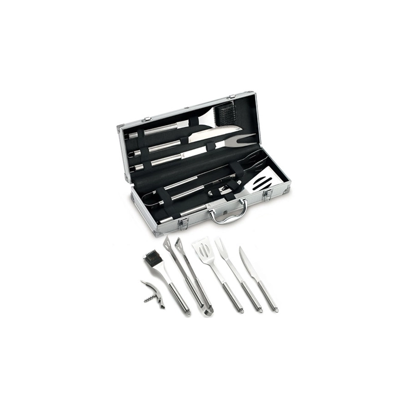 Set valigetta in alluminio composto da 6 pezzi in acciaio inox. Misura: cm 42