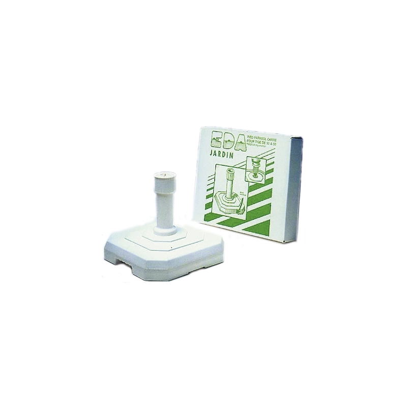 In plastica speciale, per ombrelloni con diametri da mm 32 a mm 50. Interno in cemento, peso kg 25